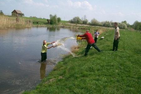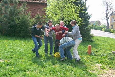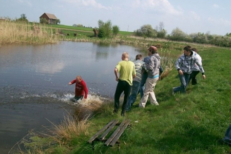 W WIELKANOCNY PONIEDZIAŁEK, choć pogoda nie dopisała młodzież z Dziadkowa oblewała się wodą. Było przy tym dużo zabawy i śmiechu. Oblewanie co dla niektórych skończyło się kąpielą w stawie.