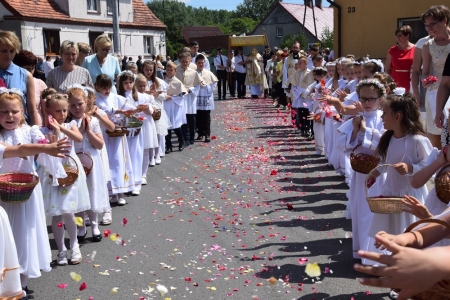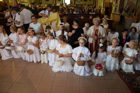 Mieszkańcy sołectwa Potasznia wzięli liczny iudział w obchodach Święta Bożego Ciała. Niezawodni strażacy asystowali księżom podczas procesji a najmłodsi sypali kwiatki.