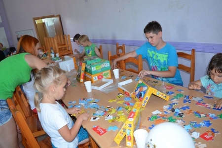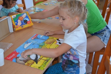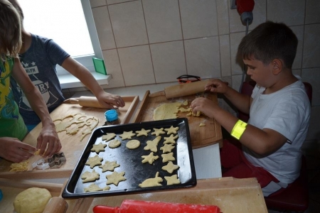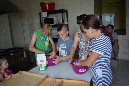 Zajęcia rozpoczęły się od wspólnego pieczenia kruchych ciasteczek. Wszyscy chętnie włączyli się do pracy: mieszali składniki, wygniatali ciasto, a następnie wykrawali ciasteczka o różnych kształtach. Gdy ciasteczka znalazły się w piekarniku, dzieci przystąpiły do zabawy grami ziołowymi. Najpierw szukały ziołowych par, w wykonanym przez nas ziołowym memory. Następnie bawiliśmy się ziołowym domino obrazkowym, a później upiekły się ciasteczka, więc dzieci przystąpiły do zajadania się swoimi wypiekami. Gdy już wszyscy się posilili, w ruch poszły puzzle z Doliny Baryczy. Każde dziecko otrzymało swoje zwierzątko do złożenia w zależności od wieku były puzzle łatwiejsze i trudniejsze. Gdy już wszyscy uporali się z puzzlami, wyszliśmy na dwór, aby puszczać ogromne bańki mydlane. Na zakończenie każde dziecko otrzymało balonik "Działaj Lokalnie" i zadowolone wróciły do domów. Przedstawicielki Stowarzyszenia również wróciły zadowolone do domów, bo wykonane przez nie gry przypadły dzieciom do gustu.