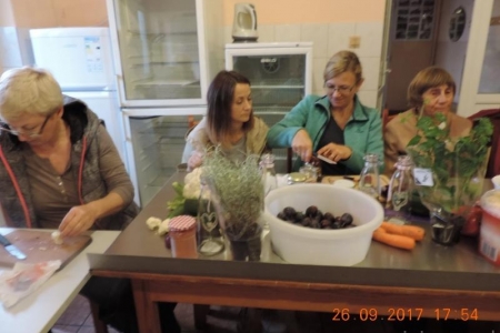 O tym wszystkim były teoretyczne i praktyczne warsztaty kulinarne w Potaszni. W zajęciach wzięło udział 13 mieszkanek, które bardzo sobie je chwaliły . Każda przygotowała słoiczek kiszonki warzywnej i podkład do winnego octu. Na pamiątkę spotkania wszystkie panie otrzymały ozdobny flakonik na zioła w zalewie. Zajęcia prowadziła Beata Piekalska przy pomocy Bogusi Bialic.