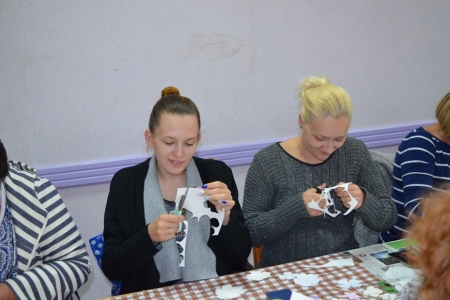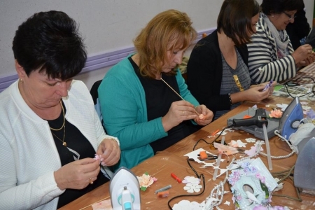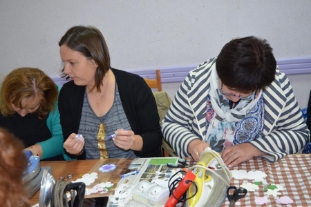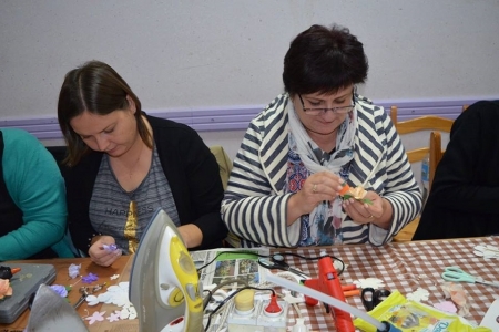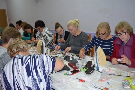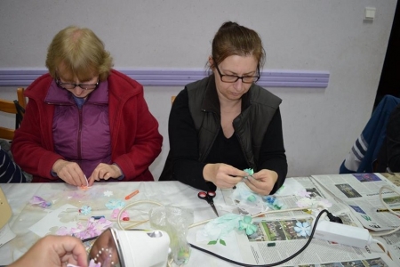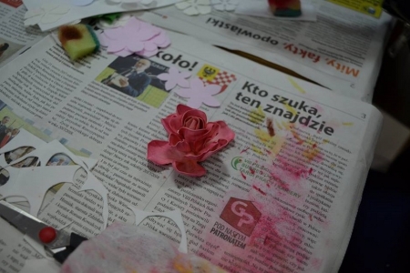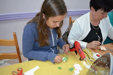 W piątek 29.09.2017 r. odbyły się kolejne warsztaty w ramach projektu "Ucz się bawiąc, jedz zdrowo i twórz kreatywnie w zielarskiej wiosce Łazy". W tym dniu było w naszej świetlicy bardzo kwieciście, a to za sprawą naszych warsztatów ,na których panie uczyły się wykonywać kwiaty z foamiranu - czyli takiej specjalnej pianki, z której pod wpływem nagrzania i odpowiedniego uformowania można stworzyć kwiaty wyglądające niczym prawdziwe. Uczestniczki uczyły się pod czujnym okiem pań: Małgorzaty Borkowskiej i Marii Gradzik. Bardzo dziękuję tym paniom za pomoc