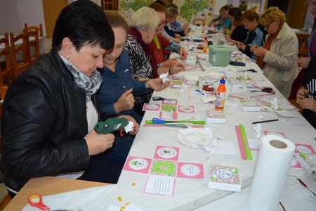 W piątek 20 października odbyły się przedostatnie warsztaty w ramach projektu "Ucz się bawiąc, jedz zdrowo i twórz kreatywnie w zielarskiej wiosce Łazy"z konkursu grantowego Działaj Lokalnie. Uczestniczki wykonały tzw. eksploding boxy" czyli pudełeczka, które po ściągnięciu pokrywki rozkładają się. Pudełeczka były okolicznościowe na urodziny, imieniny, ślub czy chrzest...
