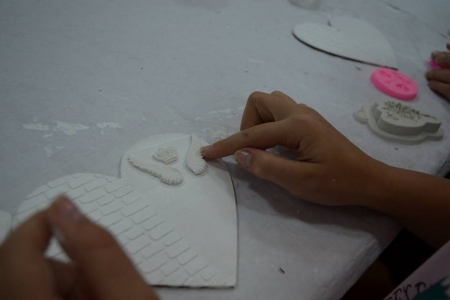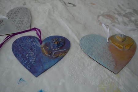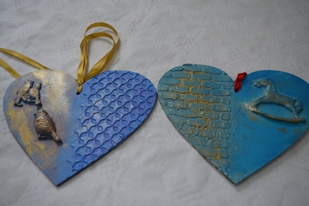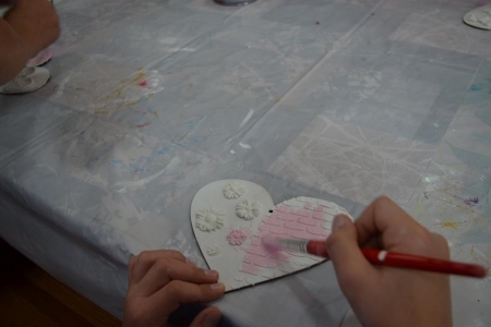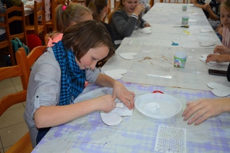 27 października gościła u nas już ostatnia grupa uczniów w ramach projektu "Ucz się bawiąc, jedz zdrowo i twórz kreatywnie w zielarskiej wiosce Łazy". Klasy 6 ze Szkoły Podstawowej w Bukowicach uczestniczyły w warsztatach polegających na zdobieniu elementów dekoracyjnych (serce zawieszka) wyciskami z masy plastycznej oraz nakładania struktury pastą za pomocą szablonu, a także malowanie tego wszystkiego farbami akrylowymi, cieniowania, metody tzw. suchego pędzla oraz zdobienia pastami pozłotniczymi. Przy okazji okazało się kto sobie sam w domu kanapki robi i potrafi smarować pastą tak jak chleb masłem ;) Choć wszystkie serca były tworzone według jednego schematu, okazało się że w naszych młodych gościach drzemie artystyczna dusza i każda zawieszka jest jedyna w swoim rodzaju i niepowtarzalna :)