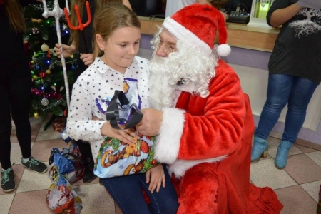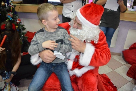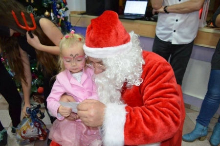 O 17.00 przybył ten wymarzony gość... czyli Święty Mikołaj i rozdał wszystkim dzieciom, a było ich 64 paczki ze słodkościami. Mikołaj miał oczywiście swoich pomocników aniołka i diabełki, którym bardzo dziękujemy za pomoc.