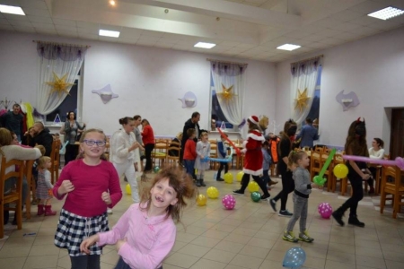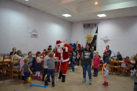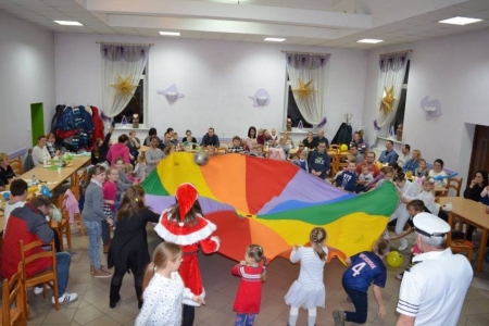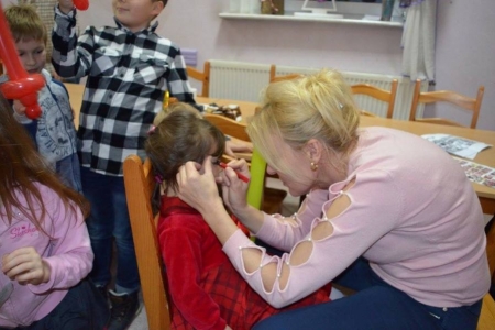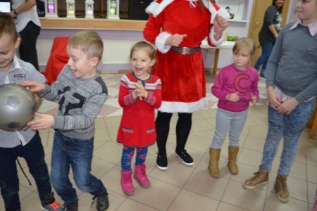 Impreza mikołajkowa rozpoczęła się o godz.16.00. Czas do przybycia tego najważniejszego gościa umilali animatorzy z Ubaw Ponad Pachy. Były gry, zabawy i tańce, balonowe zwierzaki i miecze, a nasza mieszkanka Asia Badran malowała dzieciakom buźki. Był też słodki poczęstunek przygotowany przez mieszkanki. Imprezie towarzyszył też kiermasz świąteczny, na którym można było zakupić nasze rękodzieło.