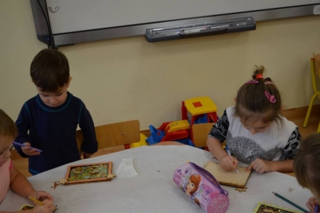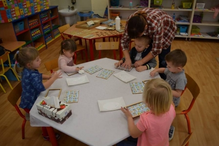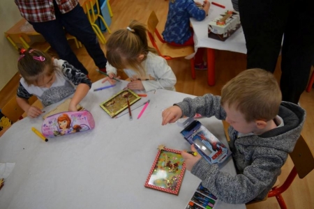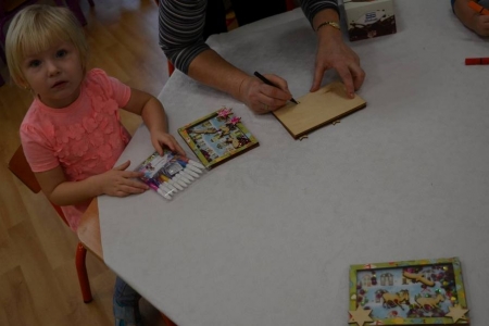 We wtorek prowadziliśmy warsztaty w grupie 0c w Przedszkolu w Bukowicach. Maluchy 3 i 4-letnie świetnie poradziły sobie z wykonaniem zimowego obrazka z shakerem