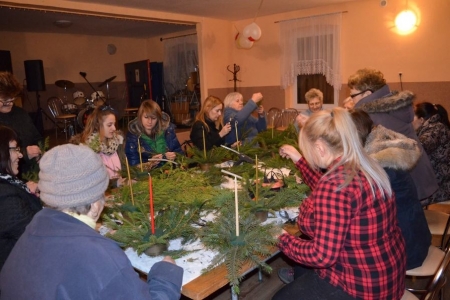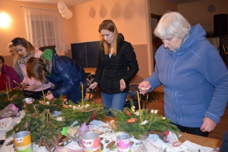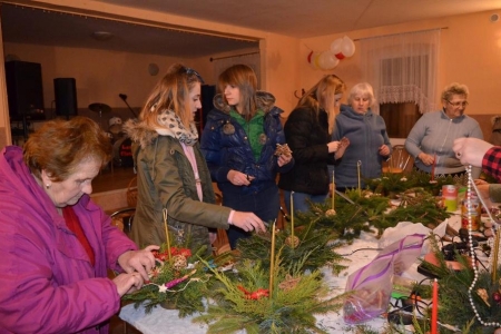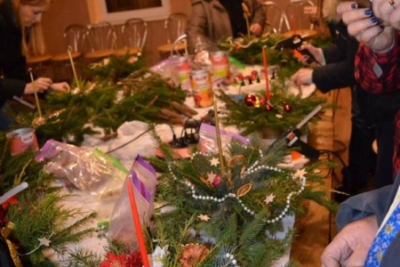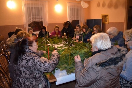 A we wtorek po południu odbyły się warsztaty w Suliradzicach, gdzie panie wykonały stroiki świąteczne.