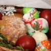 Stary obrzęd święcenia pokarmów - znany w kościele katolickim już w VIII wieku, pielęgnowany jest w większości polskich domów. Na tradycyjnym wielkanocnym stole stawiano święcone kiełbasy, chrzan, szynki, lukrowane baby, mazurki. Główne miejsce zajmował baranek z masła lub cukru jako pamiątka pierwszej nocy paschalnej oraz pisanki.