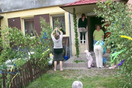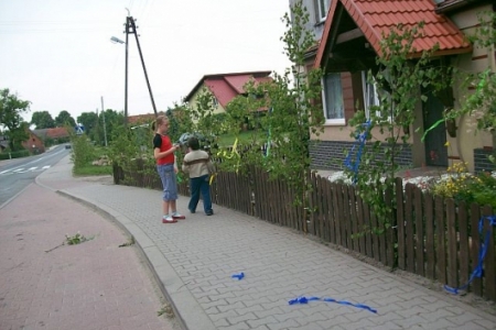 Jak już wcześniej wspominaliśmy, że w sobotę odwiedzi naszą parafię biskup Andrzej Siemieniewski. By udzielić w kościele parafialnym w Pakosławsku bierzmowania naszej młodzieży. Biskup nie zapomniał o kaplice w Dziadkowie gdzie przyjedzie i poprowadzi nabożeństwo majowe. Właśnie stąd zapał wsi by godnie przyjąć naszego gościa. Pomagali wszyscy ludzie starsi, młodzież i dzieci, każdy stroił przy swojej posesji, brzozami bibułom. A przy okazji chciałbym podziękować panu Stanisławowi Dwojakowi za ofiarowanie brzozy oraz Piotrowi Kleczewskiemu za udostępnienie traktora i rozwiezienie drzewek. Również dziękuję wszystkim tym co biernie uczestniczą owej akcji.