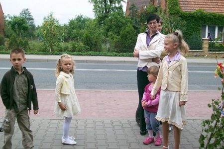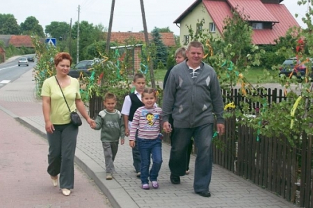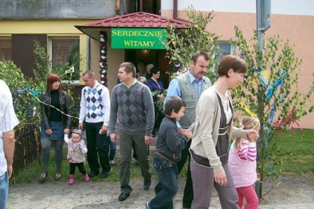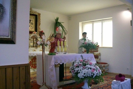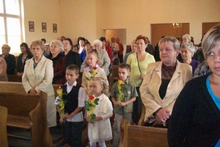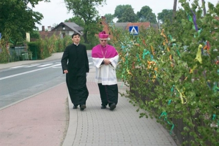 Sobota dzień zachmurzony, miejscami prześwituje słońce. Ludzie gromadzą się w kaplicy idą rodzinami, piękny widok dziadków idących pod pachę. Dzieci szykujących się by powitać naszego gościa biskupa ANDRZEJA SIEMIANOWSKIEGO. Jest, przyjechał ktoś krzyknął! – ludzie z radością witają pasterza. Następnie ksiądz proboszcz skierował słowa powitalne do ks. Biskupa objaśnił skąd i jak powstał nasz dom modlitwy. Zaczęło się nabożeństwo majowe w społeczeństwo w skupieniu modli się. Przewodnim słowem biskupa były słowa św. Pawła (Ga5,22)” OWOCEM DUCHA JEST: MIŁOŚĆ, POKóJ, CIERPLIWOŚĆ, UPRZEJMOŚĆ, DOBROĆ. WIERNOŚĆ, ŁAGODNOŚĆ, OPANOWANIE.”