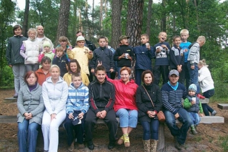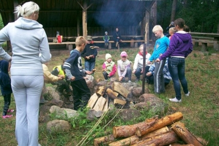 W trakcie wycieczki nie obyło się bez śpiewów dzieci i rodziców. „Szła dzieweczka” czy „Stokrotka”. O o o ognisko cieszą się dzieci jesteśmy, ognisko rozpalone było dzięki panu radnemu z Dziadkowa który również przygotował kijki na kiełbaskę. Dzieci z radością usiedły wokół ogniska, odpoczywając piekli sobie kiełbaski. Nie zabrakło na stołach chleb napoi i słodyczy.