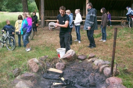 Tak jak coś się zaczyna to i coś się kończy czas wracać Radek gasi ognisko, robimy porządek wsiadamy na rowery i ruszamy. Do widzenia przygodo, dojerzdzamy do dziadkowa żegnamy poszczególnych mieszkańców. Do następnego razu…