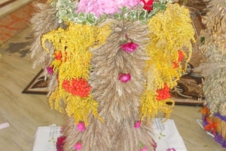 NASZYM PODARUNKIEM BYŁ WIENIEC W KRZTAŁCIE KIELICHA WYKONANY SPYCJIALNIE NA TĄ OKAZJIĘ .