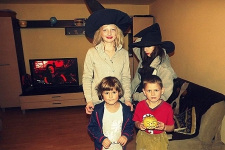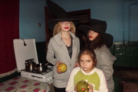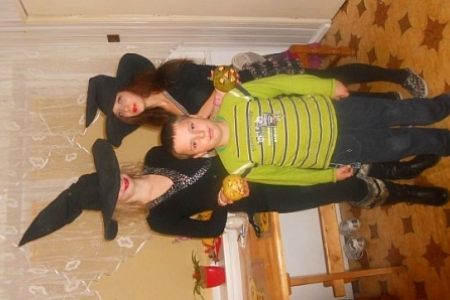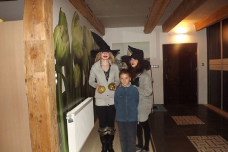 DZIEWCZĘTA, SANDRA PRZYBYLSKA, KLAUDIA FASSA, ODWIEDZAŁY NASZE DOMOSTWA, W PIĘKNYCH STROJACH HALLOWEEN. DZIECI BARDZO SIĘ CIESZYŁY.