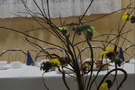 OD RANA ORGANIZATORZY (RADA SOŁECKA, SOŁTYS, MIESZKANKI SOŁECTWA) SZYKUJĄ WYSTRóJ ŚWIETLICY I NAKRYCIE STOŁóW NA UROCZYSTOŚĆ DNIA KOBIET. WARTO WSPOMNIEĆ, ŻE WIEŚ BUDUJE SWOJĄ TEMATYKĘ NA BAZIE LASU „LEŚNE DZIADY”, „KRAINA SZYSZKI” WIĘC PODCZAS IMPREZY MOŻNA BYŁO ZAUWAŻYĆ AKCENT LASU NA STOŁACH W KSZTAŁCIE LITERY „O” STAŁY ŚWIECZNIKI Z BRZOZY I SZYSZEK RĘCZNIE WYKONANE PRZEZ MARCINA MRUKA. W ŚRODKU STOŁóW STAŁ WAZON Z GAŁĘZIAMI SYMBOLIZUJĄCY DRZEWO, A NA GAŁĄZKACH WISZĄCE PTASZKI Z SZYSZEK I PIóR WYKONANE PRZEZ ANNE MRUK.