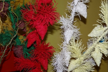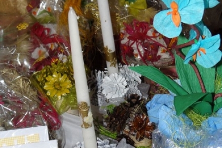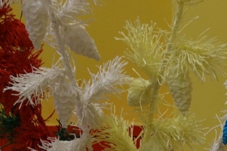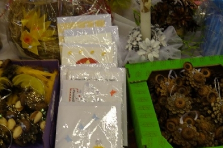 Grupa mieszkańców Dziadkowa wystawiła swoje ręcznie wykonane z naturalnego materiału ozdoby leśńe.
