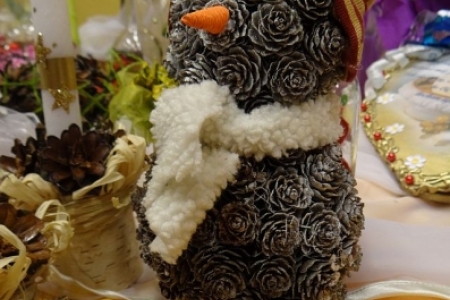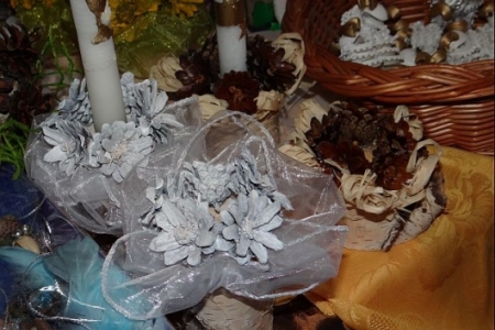 z szyszki - ptaszki, misie, bałwany, świeczniki, drzewka.