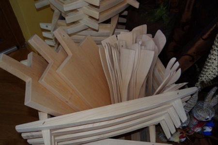 drewniane- dolnice na kwiaty, -łyżki, - deski do krojenia.