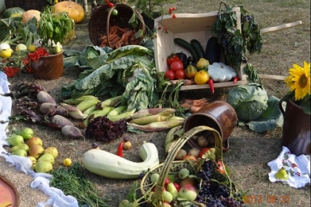 Dożynkom pogoda dopisała a my od rana po ogrodach chodziliśmy i plony rolne zbieraliśmy by piękną wystawę zrobić i do Cieszkowa na święto plonów zawieź.