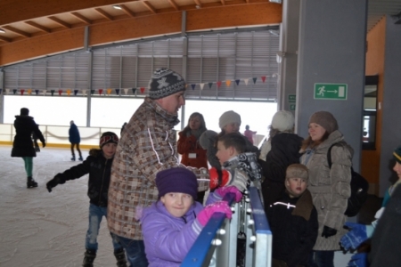 Najpierw skierowaliśmy nasze kroki na lodowisko, gdzie spędziliśmy 2 godziny. Każdy, kto był pierwszy raz na lodowisku, sprawdził czy potrafi utrzymać się w postawie pionowej na lodzie. Większości szło całkiem nieźle, a co niektórzy próbowali pod okiem instruktora jazdy do tyłu.