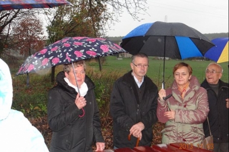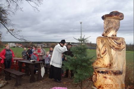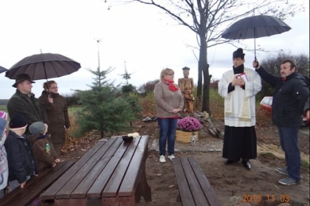 Poświęcenia kapliczki dokonał ks. Krzysztof Tomczak proboszcz naszej parafii pw. Najświętszego Serca Pana Jezusa. W uroczystości wzięli udział aktywni mieszkańcy wsi na czele z panią sołtys Anielą Błaszczyńską oraz zaproszeni przybyli goście: prezes koła łowieckiego Jeleń i jednocześnie leśniczy leśnictwa Rakłowice Janusz Łabuda, pani Iwona Wartke-Czerwińska, główna księgowa Nadleśnictwa Milicz oraz pani dyrektor GCK w Cieszkowie Halina Niedbała i rzeźbiarz postaci Huberta Bernard Izydorczyk
