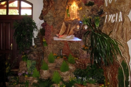 W tym roku wyjątkowo pięknie i starannie został wykonany świąteczny wystrój naszej kaplicy.Uroczyście przystrojony,żywymi jak co roku kwiatami ołtarz oraz artystycznie wykonany Grób Pański.Trzeba przyznać, że wygląda niezwykle,co zresztą widoczne jest na zdjęciach.Całość jest utrzymana w konwencji ogrodu.Stąd też wśród nieodłącznych elementów jakimi są żywe rośliny-kwiaty, wkomponowane zostało bijące źródełko płynącej wody, symbolizującej " żródło wody żywej". Na dole zaś widzimy małe oczko wodne,które może być symbolem studni Jakubowej W ten sposób pomysłodawca chciał się odnieść do tekstu biblijnego o spotkaniu Jezusa z Samarytanką przy studni Jakuba -symbolu pokuty i pojednania.Światła w kolorze niebieskim i czerwonym oświetlające postać Jezusa, mówią nam o Miłosierdziu Bożym.Pomysłodawcą całego projektu jest szczerze oddany naszej małej "godnowskiej parafii"- ks.Paweł Misiołek.Realizacja tego przedsięwzięcia nie byłaby możliwa, gdyby nie wszechstronnie uzdolnione mieszkanki naszej miejscowości.Widzimy ile serca i pracy włożono w jego przygotowanie. W pracach brały udział Sylwia i Joanna Kołodziejskie,Danuta Lipińska, Anna Karpińska oraz Bartek Gryglewicz.