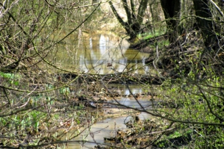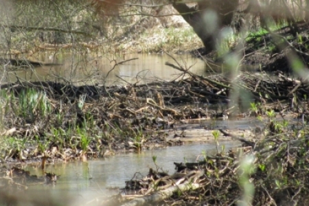 Idąc dalej groblą wzdłuż stawu Gadzinowego Małego po drugiej stronie biegnie stare koryto Baryczy.Tam właśnie w kilku miejscach natknąć się można na efekty pracy tych niezwykłych budowniczych.Możemy tam dostrzec kilka rozlewisk i zbudowane tamy,które po zimie są skrupulatnie remontowane.Być może komuś udałoby się ustrzelić aparatem fotograficznym tego niezwykłego ssaka........