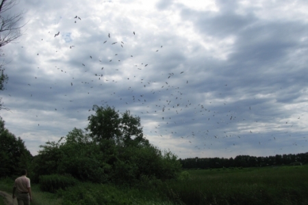 Takie oto widoki możemy zaobserwować na naszych stawach,niczym z filmu Alfreda Hitchcocka "Ptaki".Co chwilę gniazdujące u nas mewy śmieszki podrywają się do lotu,robiąc przy tym straszny rwetes.To jest muzyka dopiero.