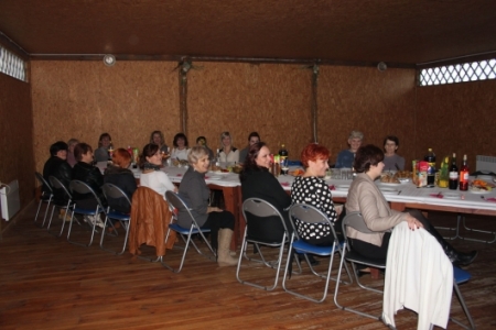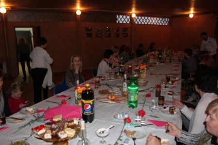 Spotkanie rozpoczęło się o godzinie 17- stej od uroczystego powitania, życzeń i przemowy połączonej z wręczeniem każdej kobiecie pięknego czerwonego goździka . Całusy w pakiecie z kwiatkiem tez się zdarzały. ![]()