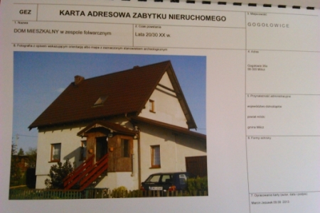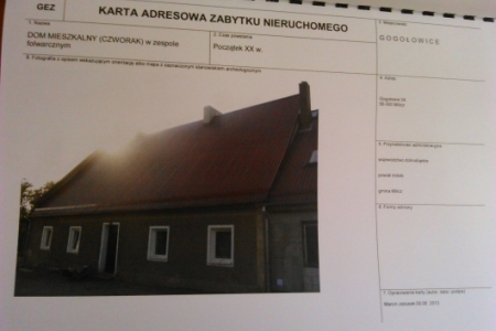 W wykazie zabytków znajdującym się w urzędzie Miejskim jako obiekty zabytkowe ujęte są następujące nr nieruchomości : 3, 4, 6,8,9,13,15,24,29,31,32, 36, 36a, 34, 40. Dodatkowo do wykazu wpisany jest cmentarz ewangelicki znajdujący się na pd. od wsi. Cały obszar Gogołowic objęty jest strefą "B" ochrony konserwatorskiej, Strefą "E" ochrony konserwatorskiej ekspozycji, oraz strefą "OW" ochrony archeologicznej.