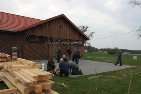 W bardzo miłej atmosferze zabraliśmy się do pracy. Wizytę złożył nam również Pan Roman Żyto- inspektor nadzoru, żeby sprawdzić czy budujemy wiatę, czy nas fantazja nie poniosła i nie majstrujemy czegoś innego.