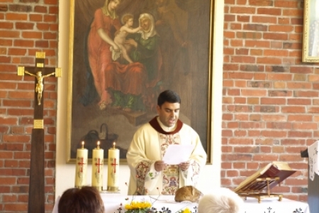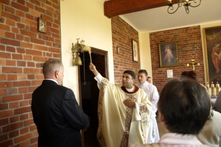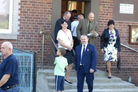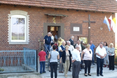 Uroczystości rozpoczęły się o godzinie 16.30 od Mszy Świętej sprawowanej w intencji wszystkich Rolników i mieszkańców wsi. Mszę odprawił Ks. Adrian Kosendiak , który wygłosił piękne kazanie nawiązujące do naszej pracy w kaplicy, nawoływał do jedności wśród mieszkańców i wzajemnego poszanowania . Następnie dokonał poświęcenia kaplicy. Wśród licznie przybyłych mieszkańców i zaproszonych gości można było zauważyć naszych rolników : Rodzinę Kąkolów, Szlachtów, Słabickich, Stopów, Kryściaków,Beniów. Swoją obecnością zaszczycili nas również : Burmistrz Gminy Milicz- Paweł Wybierała, właściciel firmy Drew-Box – Janisław Kaczmarek i delegacja Pań z Godnowej. Te ostatnie na zakończenie mszy wręczyły naszej Pani Sołtys bukiet kwiatów gratulując pięknie odremontowanej kaplicy i życząc powodzenia w dalszym sprawowaniu funkcji.