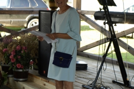 Po uroczystej mszy wszyscy zebrani udali się na plac przy świetlicy wiejskiej , gdzie już czekała orkiestra oraz inni uczestnicy dożynek. Oficjalnego przywitania zaproszonych Rolników , mieszkańców i gości dokonała Nasza Sołtysowa – Ewa Kamińska. Nie kryjąc wzruszenia dziękowała wszystkim Rolnikom - za trud pracy na roli, mieszkańcom – za pomoc przy remoncie kaplicy, Burmistrzowi – za przyznane w ramach inicjatywy lokalnej dotacje i wszystkim, którzy przybyli na uroczystość. Następnie wręczone zostały dożynkowe chlebki upieczone specjalnie na tę okazję przez Państwa Wandę i Jana Procajło. Wręczanie chlebków odbyło się podczas odczytania wiersza mojego skromnego autorstwa, który podobał się mieszkańcom i zaproszonym gościom o czym mogłam przekonać się osobiście – słysząc słowa uznania od osób przybyłych na nasze uroczystości.