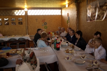 Po oficjalnej części wszyscy weszli do pięknie przystrojonej świetlicy gdzie czekały nakryte stoły, ciasta pieczone osobiście przez mieszkanki wioski, kawa, herbata i mnóstwo innych pyszności.