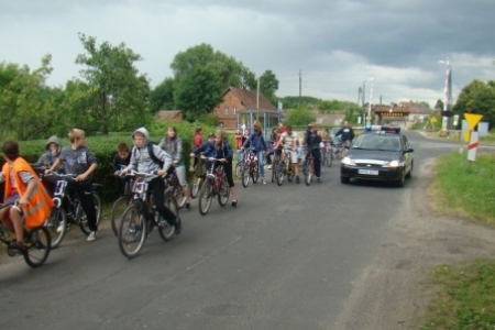 Rozpoczynające się lato postanowiliśmy uczcić wspólnie organizując RAJD ROWEROWY pod hasłem"Bezpieczne wakacje". Rozwieszone zostały plakaty w sąsiednich wioskach i chętne osoby lub zoorganizowane grupy mogły się przyłączyć. W sobotę o godz. 15.00 grupa rowerzystów z naszej wioski wyruszyła przez las do Grabowna Małego gdzie czekała następna grupa rowerzystów i już razem udali sie do Grabowna Wielkiego, gdzie oczekiwali kolejni chętni wraz z policjantem.