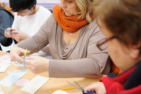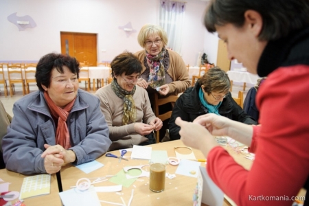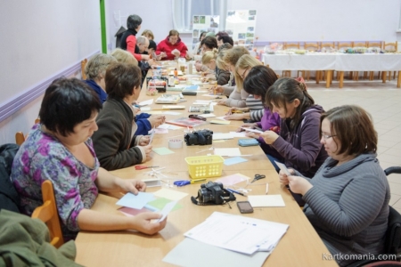 Zajęcia cieszyły się zaskakująco dużym zainteresowaniem, a ta z pozoru trudna i „dziwnie”, bo obco brzmiąca technika, dzięki cierpliwości i zaangażowaniu instruktorki i uczestników, zdobyła prędko nowych entuzjastów. W efekcie blisko pięciogodzinnych zajęć każdy uczestnik z prostych materiałów – tj. kolorowe kartoniki, tasiemki, guziki, stworzyło co najmniej 2-3 karteczki własnego pomysłu.