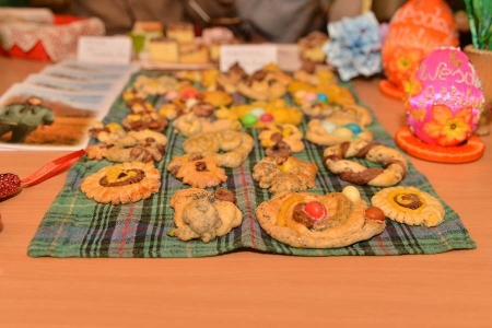 W trakcie Gali na świetlicy wiejskiej trwał w najlepsze kiermasz rękodzieła. Zaprezentowało się na nim 12 sołectw – Dziadkowo, Pakosławsko, Góry, Łazy, Nowy Zamek, Miłosławice, Chojnik, Kocina, Granowiec, Chynowa, Bukowinka i Korzeńsko, które rozstawiły stragany z różnorodnymi cudami wykonanymi ręcznie przez mieszkańców z przeróżnych materiałów – kwiatów z bibuły, dekoracji z papieru, cekinów, wstążek, guzików, szyszek, makaronu, zdobionych różnymi technikami, tj. quling, scrapbooking, decoupage, wyroby z gliny, masy solnej, z ziaren zbóż, wyszywane serwety, hafty, robótki na drutach i szydełku, ekologiczna biżuteria z drewna, wełny, koralików…ach najprawdziwszy jarmark. A do tego nalewki, naleweczki, ciasta i ciasteczka, kapuśniaczki, pierniczki, placki i placuszki. Na świetlicy zgromadziło się chyba tyleż samo odwiedzających co gości pod namiotami na widowni. Jedzenia podczas Gali było w brud, można było wielokrotnie podchodzić do punktów gastronomicznych i za każdym razem wracać do stołu z pełnym talerzem – o stronę gastronomiczną Gali perfekcyjnie zadbało chojnickie Koło Gospodyń Wiejskich wraz ze Stowarzyszeniem – panie nagotowały gary pożywnych zup, bigosu, setki kiełbas, ok. 100 kg pierogów z różnym nadzieniem. Można było do woli jeść wędlin, surówek, sałatek, warzyw, pieczywa, ciast, ciasteczek.