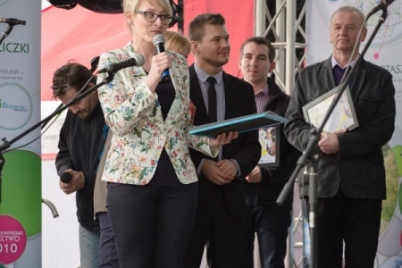 Po podsumowaniu prezes Ozga zaprosiła na scenę przedstawicieli samorządów oraz komisji konkursowej do wręczenia pamiątkowych dyplomów, nagród, wyróżnień i podziękowań za udział. Jeszcze raz przypomniała wartość finansową otrzymanych przez laureatów nagród oraz uzasadnienia komisji: