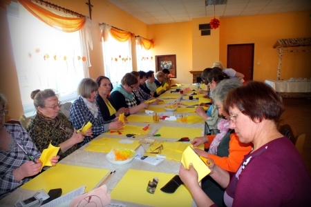 Z Rudy udaliśmy się do Miłosławic – owocowej wsi, gdzie na świetlicy przywitała nas sołtys Teresa Duda oraz członkinie lokalnego stowarzyszenia „Nad Baryczą”. Zostaliśmy poczęstowani sycącym drugim śniadaniem – wyjątkowo smakowały wszystkim bułeczki drożdżowe z owocowym nadzieniem oraz ciasto czekoladowe z owocami (laureat konkursu kulinarnego podczas Święta Sadów 2014). Następnie panie opowiedziały o historii Miłosławic oraz o działaniach na rzecz wsi. Następnie przeszliśmy do warsztatów, podczas których nauczyliśmy się robić kurczaki z papieru.