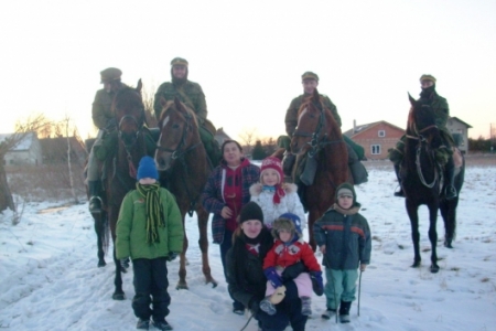 Obcowanie blisko z przyrodą i z leśnymi mieszkańcami zimą to niesamowite przeżycia. Przekonała się o tym grupa osób stowarzyszenia „GRANOWIEC 300”, która podczas przejażdżki saniami po leśnych duktach przypadkowo spotkała jadących konno Ułanów Jazłowieckich.