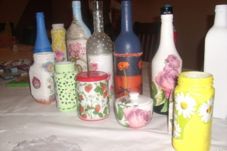 W Sali wiejskiej spotkały się dwie grupy uczestników. Jedna grupa uczyła się szydełkowania, druga natomiast zdobienia przedmiotów techniką decoupage.