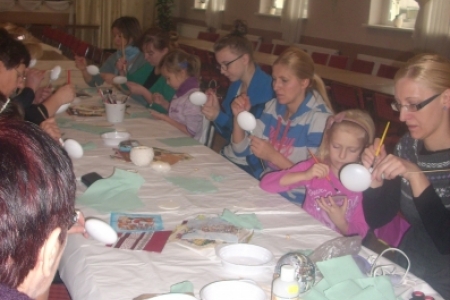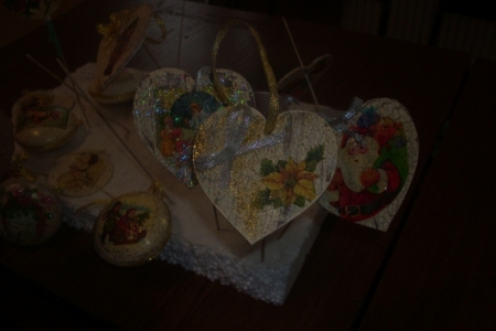Na zajęciach prowadzonych przez panie Arletę Orłowską i Annę Firer, każdy ozdobił samodzielnie bombkę i serduszko z użyciem wybranych przez siebie motywów. Warsztat odpowiedni zarówno dla osób początkujących, jak i tych, którzy chcieliby rozwinąć swoją technikę - głównie o umiejętność naklejania motywów na przedmiotach okrągłych. Nasze kursantki już dziś pytały o kolejne spotkanie i poznanie kolejnej metody decoupage, dlatego wspólnie ustalimy następne warsztaty. Po zakończeniu warsztatów posililiśmy się smaczną zupą, którą ugotowała dla nas pani Janinka.