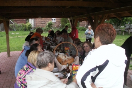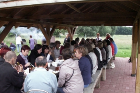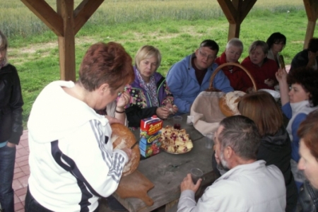 Przywitaliśmy naszych mazurskich gości jak przystało na gospodarza suto zastawionym stołem na którym znalazły się potrawy przygotowane przez mieszkańców wsi.Tematyka rozmów głównie dotyczyła działań jakie podejmuje nasze sołectwo.Z wielkim żalem rozstawaliśmy się z naszymi gośćmi .