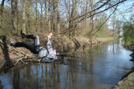 Podczas kolejnego wyjazdu na trasę szlaku zielonego młodzież doświadczyła autentycznej przeprawy przez rzekę Dąbrocznię. Najważniejsze, że cztery dziewczyny, które dołączyły do grupy, też dały sobie radę w trudnych warunkach.