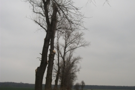Na odcinku drogi powiatowej Korzeńsko-Laskowa nasza społeczność wykonuje cięcia konarów i likwidację starych wiatrołomów.