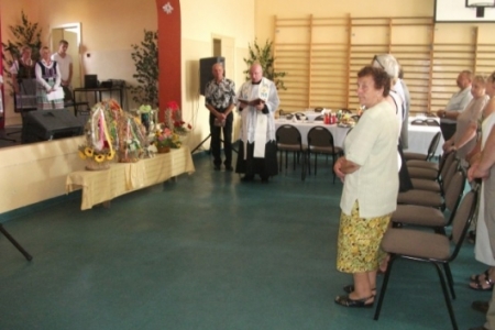 Cały obrzęd dożynkowy odbył się w sposób bardzo „staropolski”, bo bez nagłośnienia, gdyż na godzinę przed rozpoczęciem imprezy w całej okolicy nastąpiła awaria prądu. Mimo takiej niedogodności zespół śpiewaczy dał sobie świetnie radę bez podkładu muzycznego przezentując tradycyjne przyśpiewki dozynkowe. Oficjalną część uroczystości zakończyło wspólne odśpiewanie piosenki „Bo wszyscy Polacy to jedna rodzina” i wspólna fotografia. Dla gości i mieszkańców wioski przygotowano smaczny poczęstunek, z którego obecni korzystali na zasadzie „szwedzkiego stołu”.