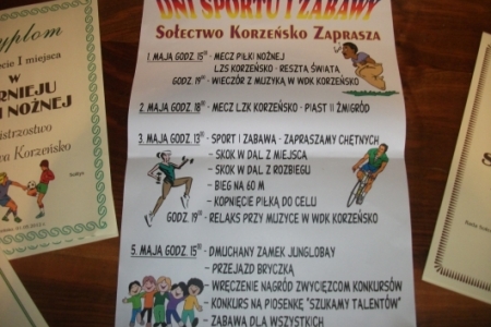 1 maja - zostanie rozegrany mecz piłki nożnej i odbędzie się wieczorek z muzyką.