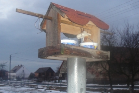 Tegoroczna zima jest bardzo sroga. Wszystkim nam dokuczają srogie mrozy, a do tego te obfite opady śniegu... Od samego pisania robi się zimno!! Nie zapominając o potrzebujących naszej pomocy maleńkich ptaszkach kilku panów postanowiło zbudować im karmniki. Ptaszki mogą znależć w nich ulubione przysmaki: ziarna zbóż i słonecznika oraz słoninkę. Mamy nadzieję, że dzięki temu łatwiej będzie przetrwać im zimę!!
