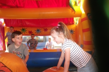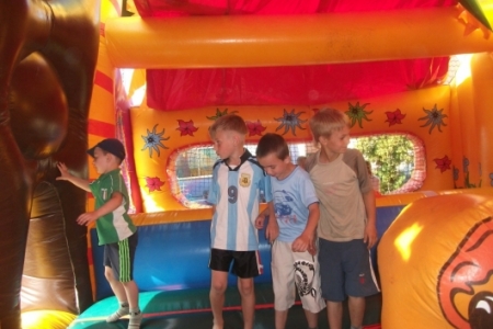 Dorośli spędzają czas na kameralnych spotkaniach, dzieci cieszą się dmuchanym zamkiem, a młodzież przygotowuje wieczorek z muzyką.