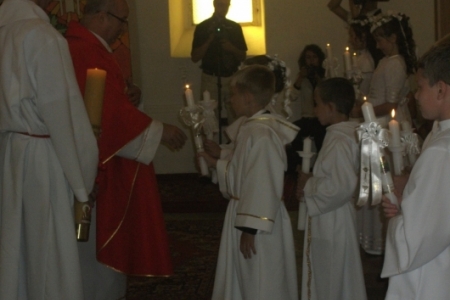 W kulminacyjnym momencie Eucharystii dzieci przyniosły do ołtarza chleb eucharystyczny, wino i wodę, potem przyjęły po raz pierwszy Pana Jezusa do swoich serc i tym samym formalnie zostały członkami katolickiej wspólnoty. Z okazji pierwszej Komunii św. dzieci otrzymały pamiątki religijne.
